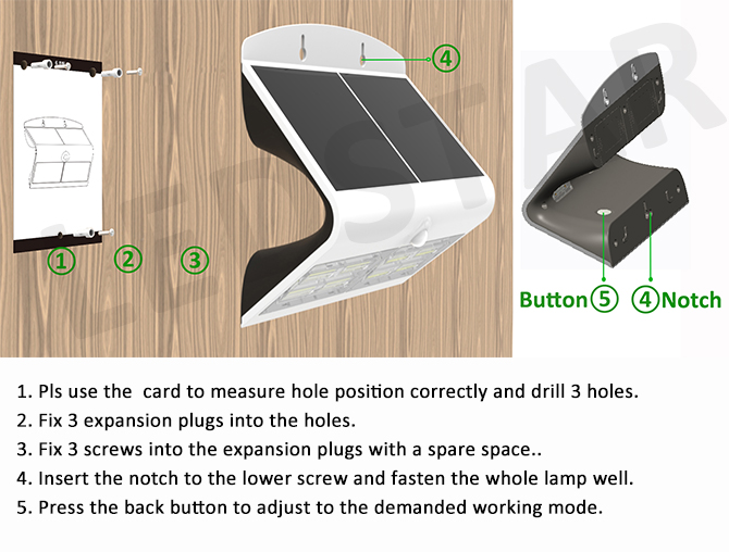 This solar wall light is suitable for both private and public use, add more charm and fancy for your house!